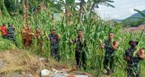 Babinsa Koramil 10/Lolowau Kodim 0213/Nias Laksanakan Panen Jagung di Lahan Koramil...