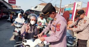 Pengendara Roda Dua yang Melintas Mapolsek Arjawinangun Diberikan Bendera untuk Motor